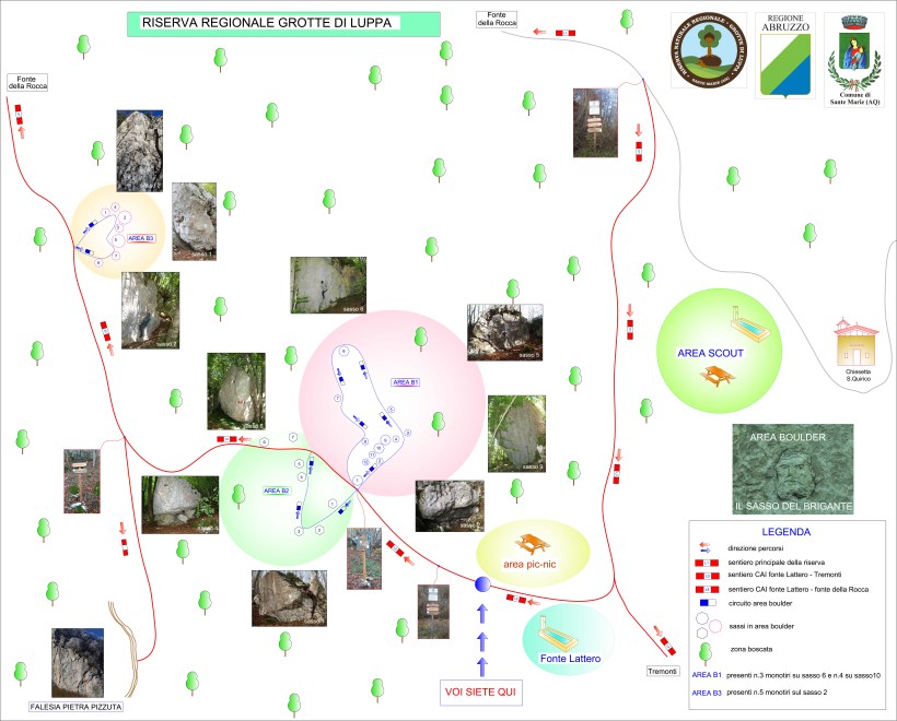 Nel 2017 è stato realizzato il sito di arrampicata su roccia all’interno della falesia nel Comune di Sante Marie in località Pietra Pizzuta. Si tratta di 22 monotiri di lunghezza da 15 a 30 metri con difficoltà massima intorno al 8a. Gli itinerari sono assicurati con tasselli muniti di placchetta in acciaio inox con foro proporzionato al diametro del tassello. In ciascun itinerario è stato installato un gruppo sosta in acciaio inox costituito da placchette, catena e moschettone integrati e posizionato in verticale.